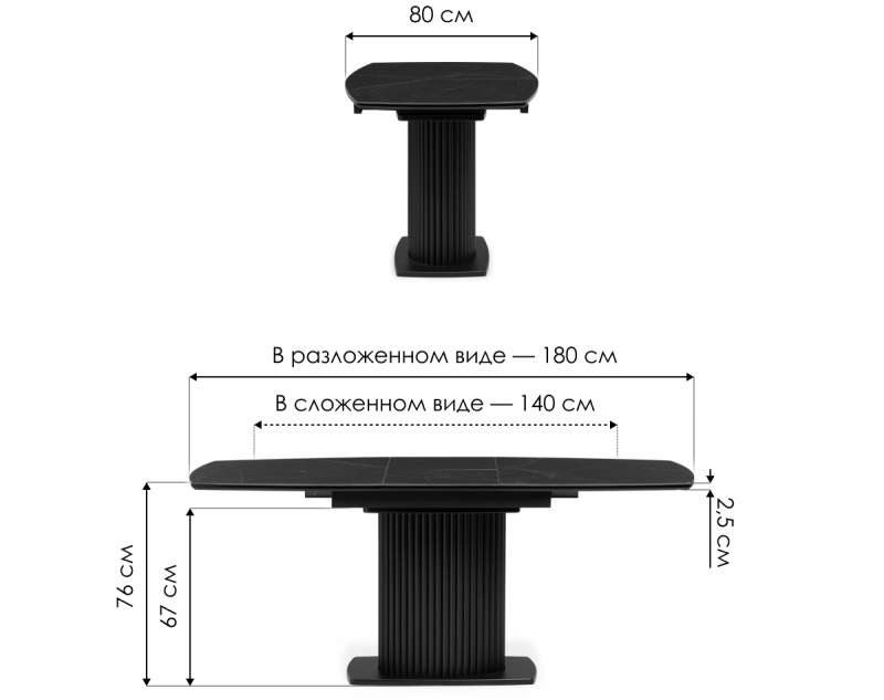 Керамический стол Фестер 140(180)х80х76 черный мрамор / черный (80x76).