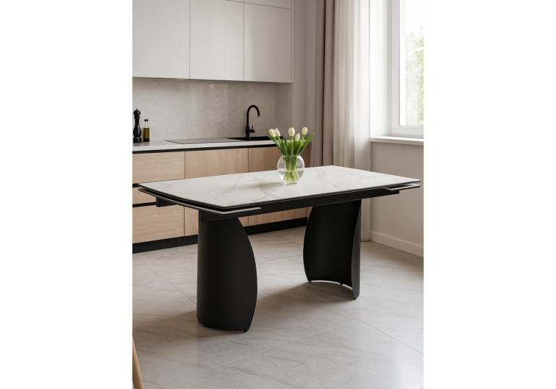 Керамический стол Готланд 180(240)х90х79 белый мрамор  / черный (90x79).