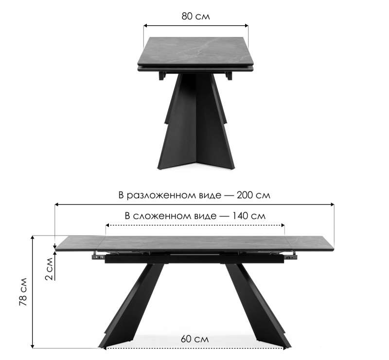 Керамический стол Ливи 140(200)х80х78 серый мрамор / черный (80x78).