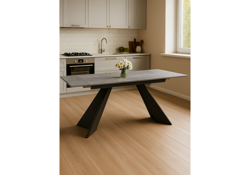 Керамический стол Ливи 140(200)х80х78 серый мрамор / черный (80x78)