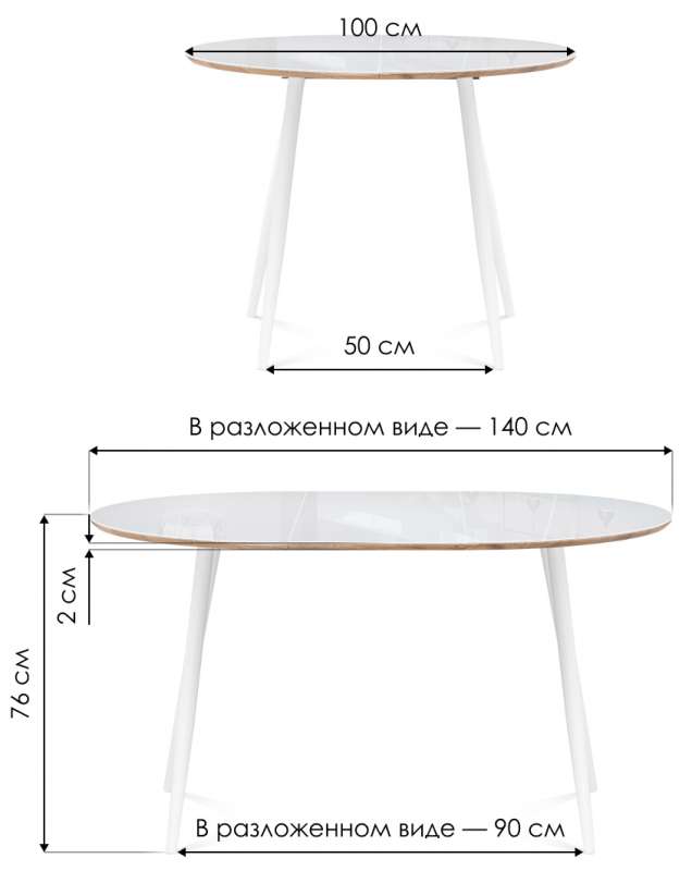 Расстояние между ножками: 90 х 50 см. Толщина столешницы: 2 см. Толщина МДФ под стеклом: 1,6 см. Толщина стекла: 0,4 см.