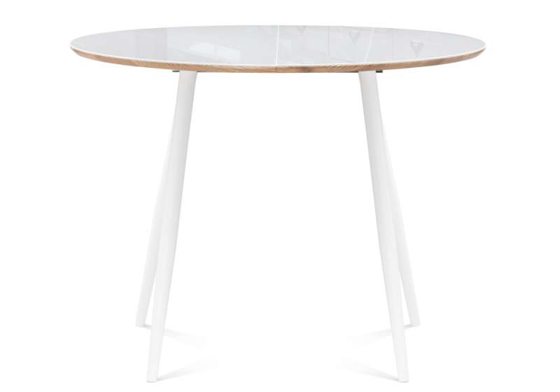 Стол стеклянный Абилин 100(140)х100х76 ультра белое стекло / дуб вотан / белый матовый (100x76).