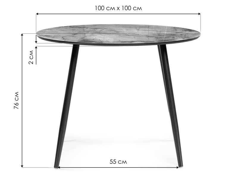 Стол стеклянный Анселм 100х76 леонардо / черный (100x76).