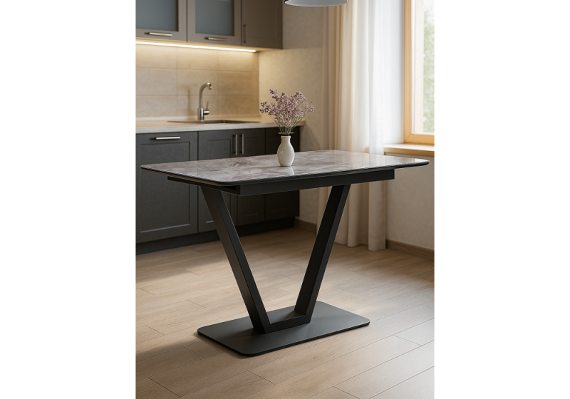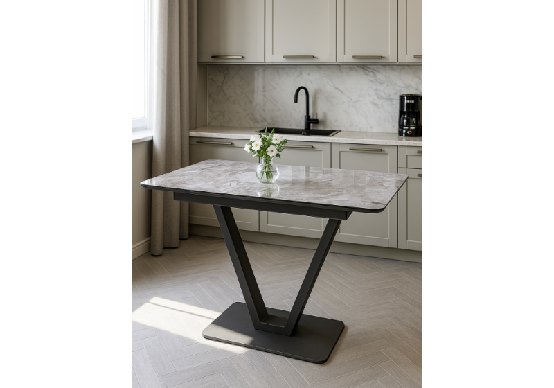 Стол стеклянный Бугун мрамор серый / черный (80x77)