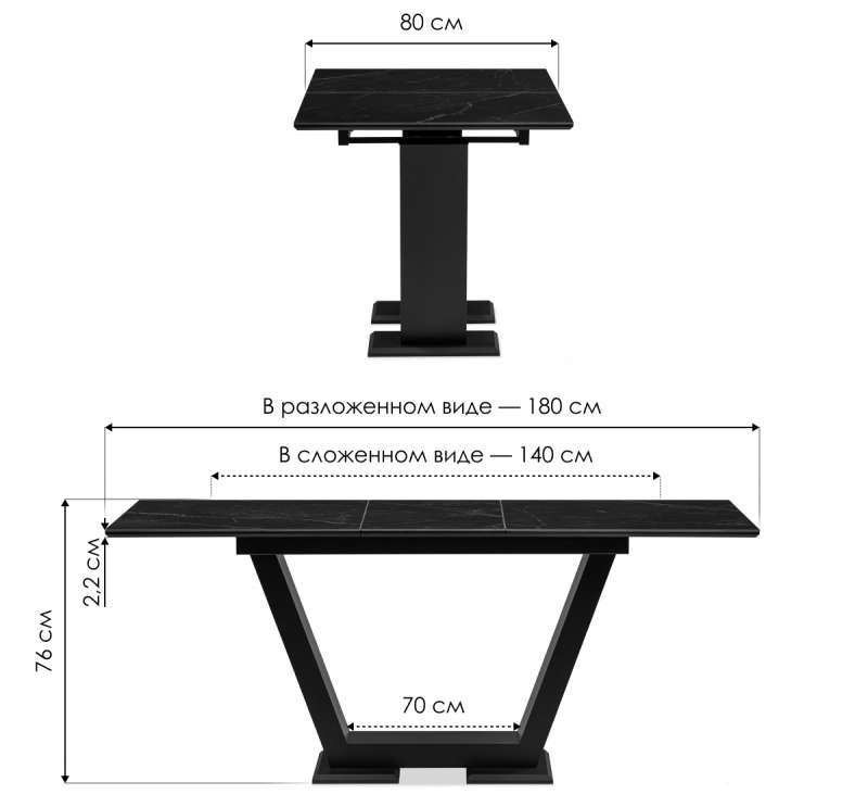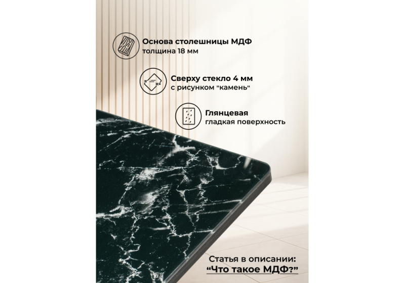 Стол стеклянный Иматра мрамор черный / черная шагрень (80x76).