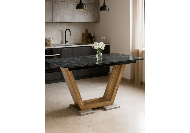 Стол стеклянный Иматра мрамор черный / черная шагрень (80x76)