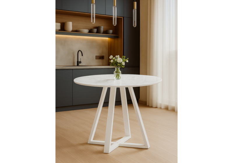 Стол стеклянный Норфолк 100 белый мрамор / белый (100x78)