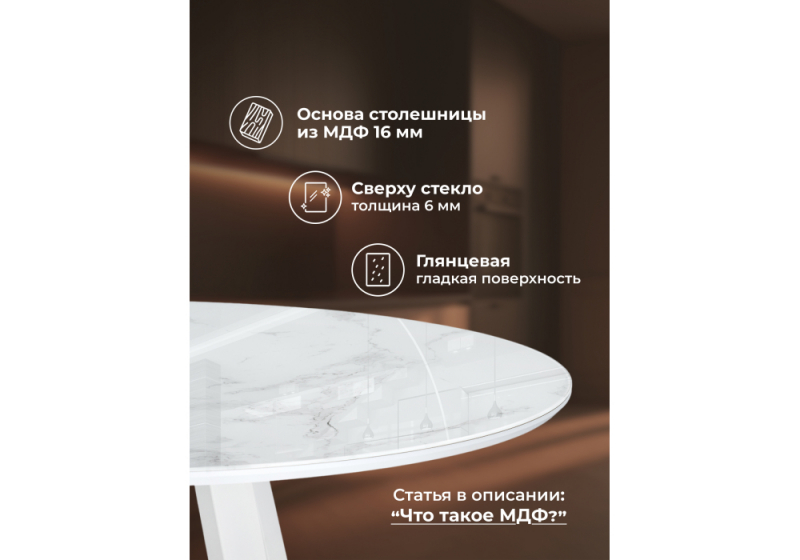 Стол стеклянный Норфолк 100 белый мрамор / белый (100x78).