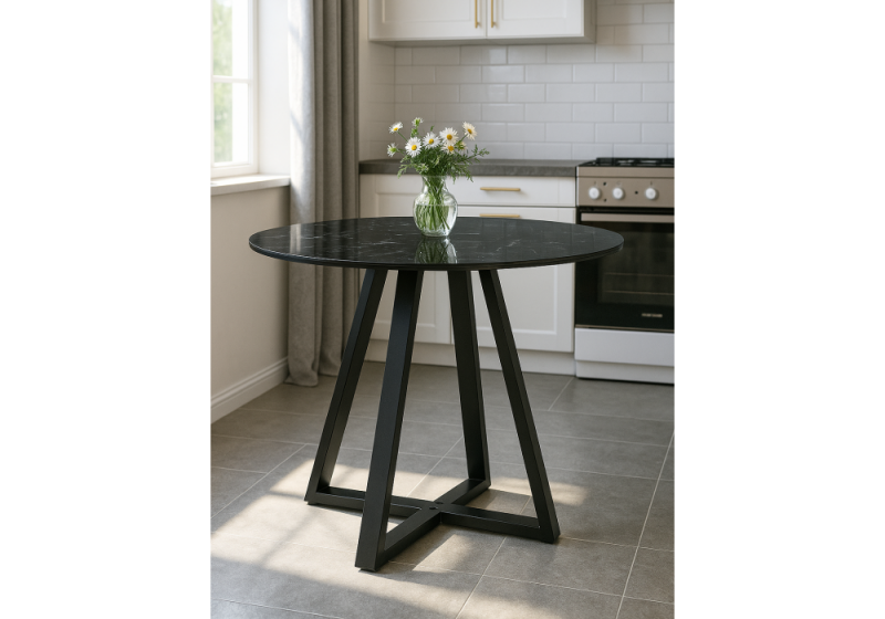 Стол стеклянный Норфолк 100 черный мрамор / черный (100x78)