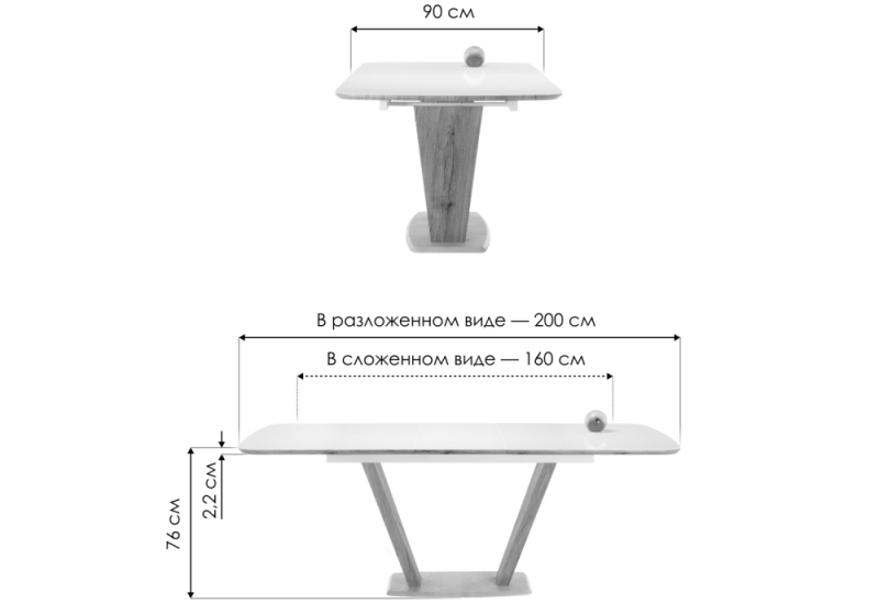 Стол стеклянный на тумбе Петир 160 белый / дуб монтана (90x76).