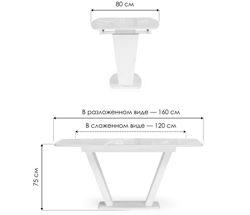 Длина стола в разложенном виде: 160 см.