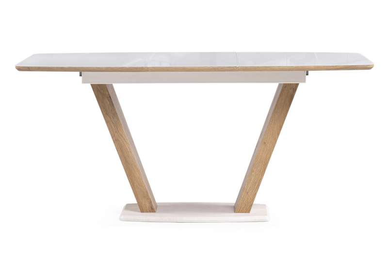 Стол стеклянный Питер 120(160)х80х75 ультра белый / дуб вотан (80x75)