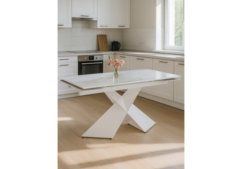 Стол стеклянный Хасселвуд 160(220)х90х77 белый мрамор / белый (90x77)