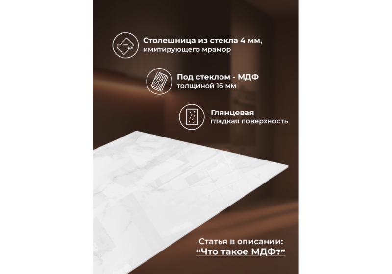 Стол стеклянный Хасселвуд 160(220)х90х77 белый мрамор / белый (90x77).