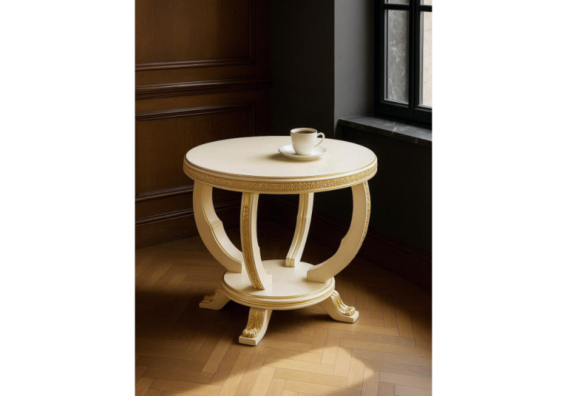 Журнальный стол Луис круглый слоновая кость / золото (70x52).