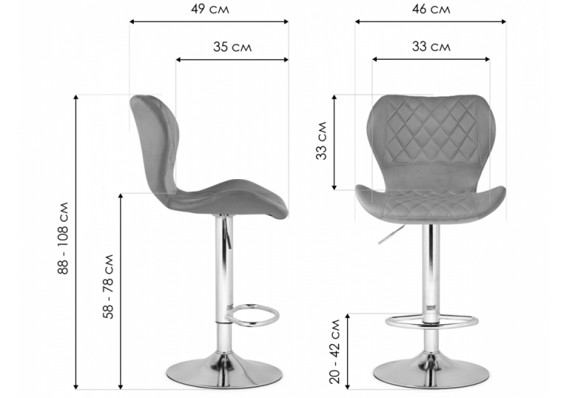 Высота спинки: 32 см. Высота подножки: 20 - 40 см.