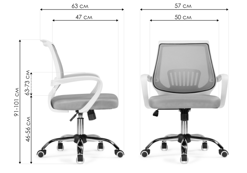 Компьютерное кресло Ergoplus light gray / white (57x63x91).