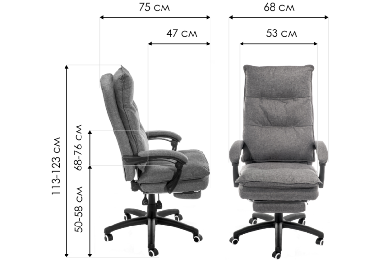 Глубина кресла с выдвинутой подставкой для ног - 107 см.