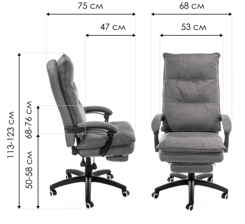 Глубина кресла с выдвинутой подставкой для ног - 107 см.