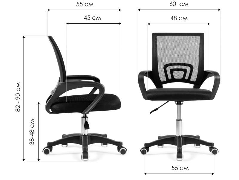 Высота спинки: 44 см. Диаметр крестовины: 55 см.