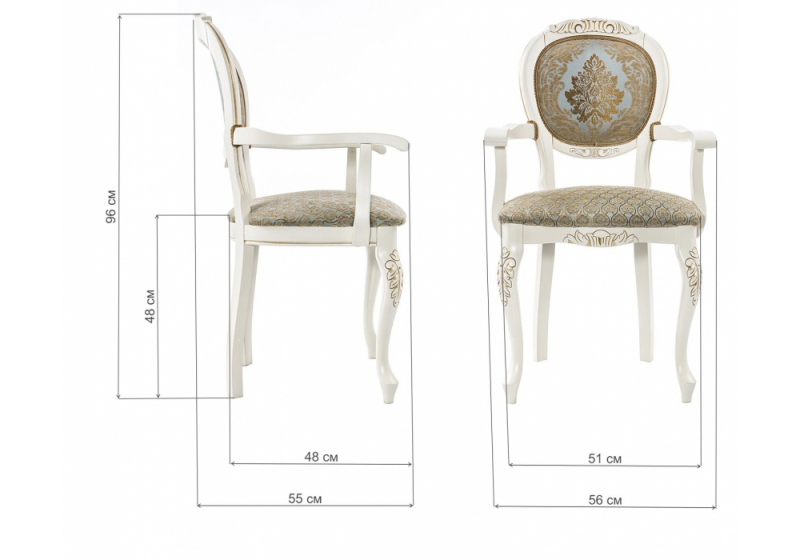 Кресло Adriano 2 молочный с патиной (56x55x96)