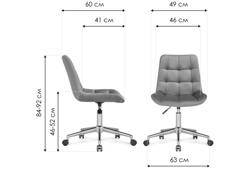 Диаметр крестовины: 63 см. Высота спинки: 38 см.