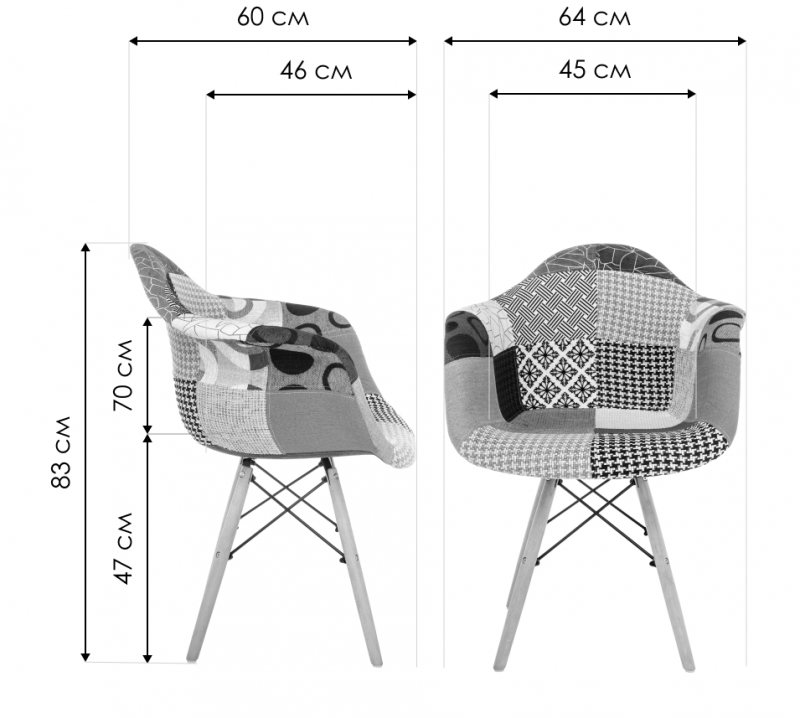 Высота подлокотников: 70 см.