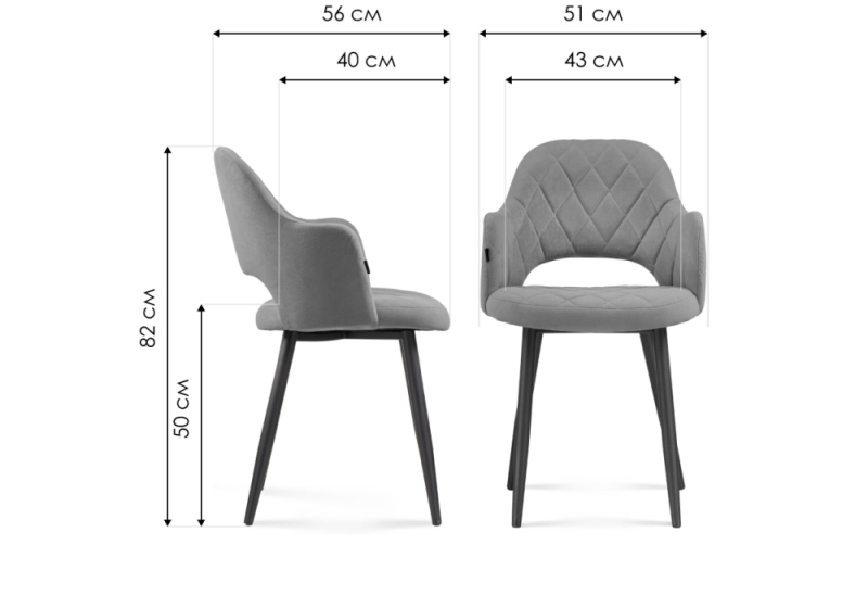 Стул на металлокаркасе Гутрид ромбы спереди серый / черный (51x56x82).
