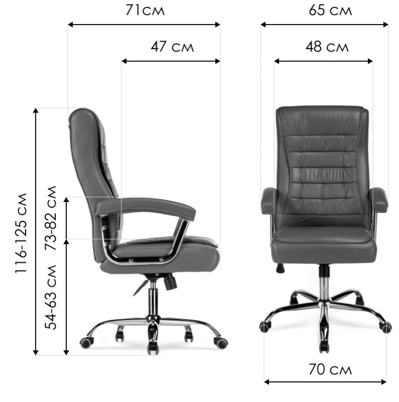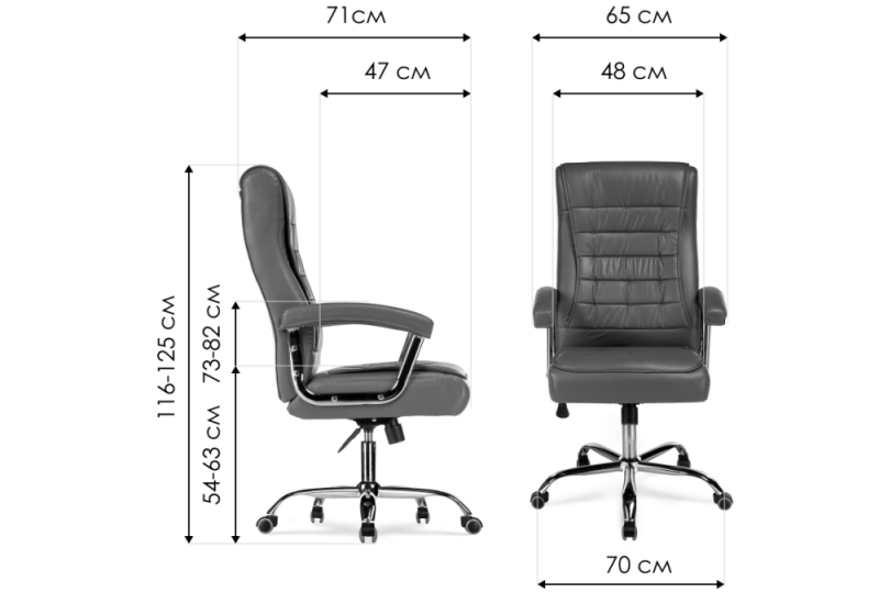 Высота подлокотников: 73 - 82 см. Диаметр крестовины: 70 см.
