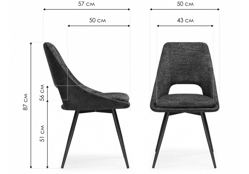 Стул на металлокаркасе Avianus вращающийся темно-серый / черный (50x57x87).