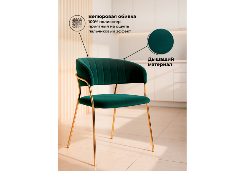 Стул на металлокаркасе Kamelia зеленый / золото (57x55x80)