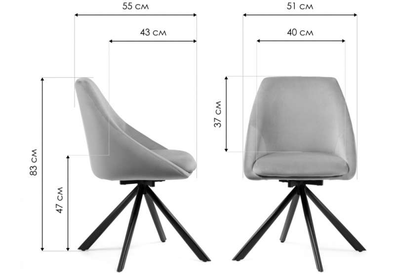Стул на металлокаркасе Окленд крутящийся дымчатый / черный (51x55x83).
