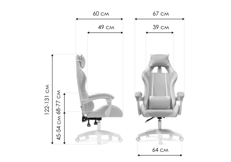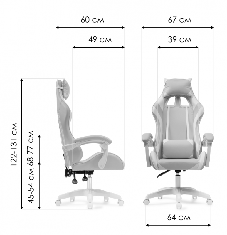 Высота подлокотников: 68 - 77 см. Диаметр крестовины: 64 см.